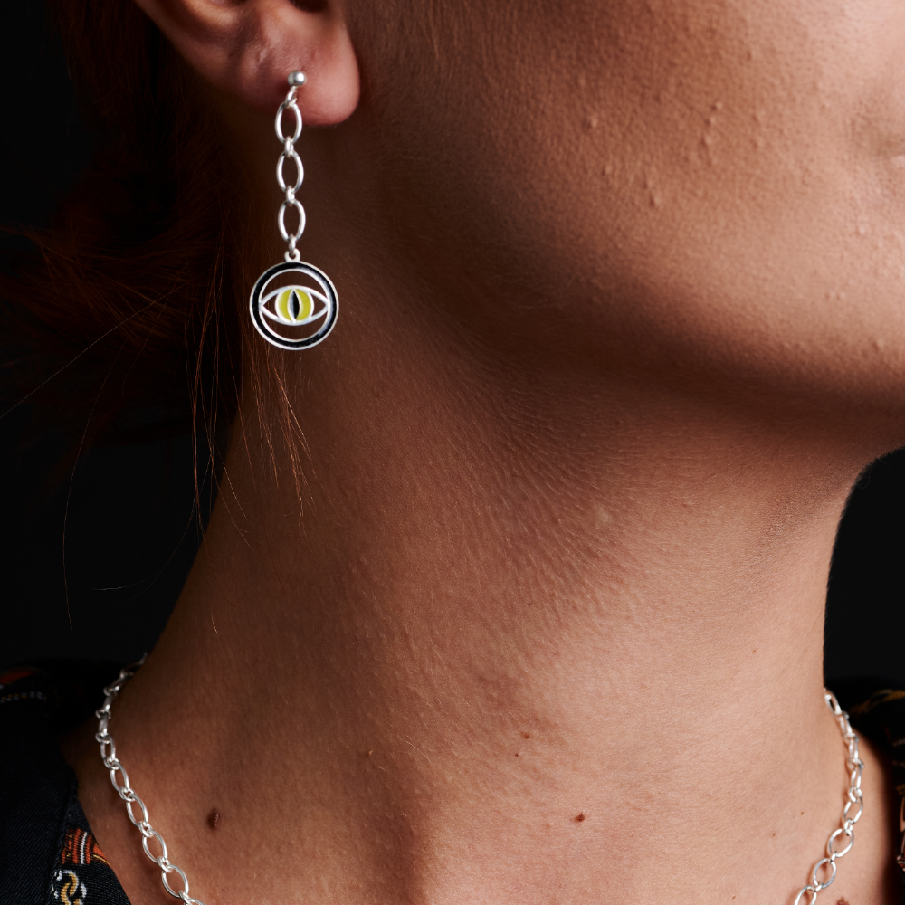 Scoate latura ta misterioasă la suprafață cu acești cercei din argint realizati manual! Dacă vrei să atragi atenția oriunde mergi, îți recomandăm cu drag Reptile Eye Earings. Poți alege și varianta vopsită cu aur galben sau alb.